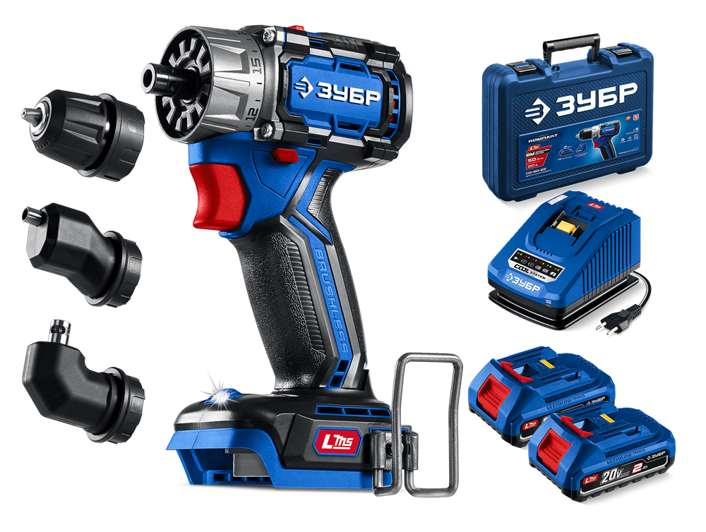 КомплектацияДрель-шуруповерт; Батарея аккумуляторная - 2 шт.; Зарядное устройство; Патрон кулачковый; Патрон угловой; Патрон эксцентриковый; Бита; Скоба поясная; Битодержатель; Кейс; Инструкция; Упаковка
