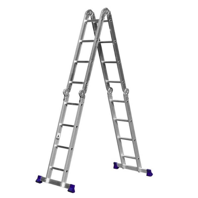 Лестница-трансформер алюминиевая СИБИН 38852 4x4 - это надёжное и удобное приспособление для выполнения различных хозяйственных работ. Она состоит из четырёх ступеней, которые можно комбинировать в разных конфигурациях, что позволяет достичь необходимой высоты и рабочей поверхности.