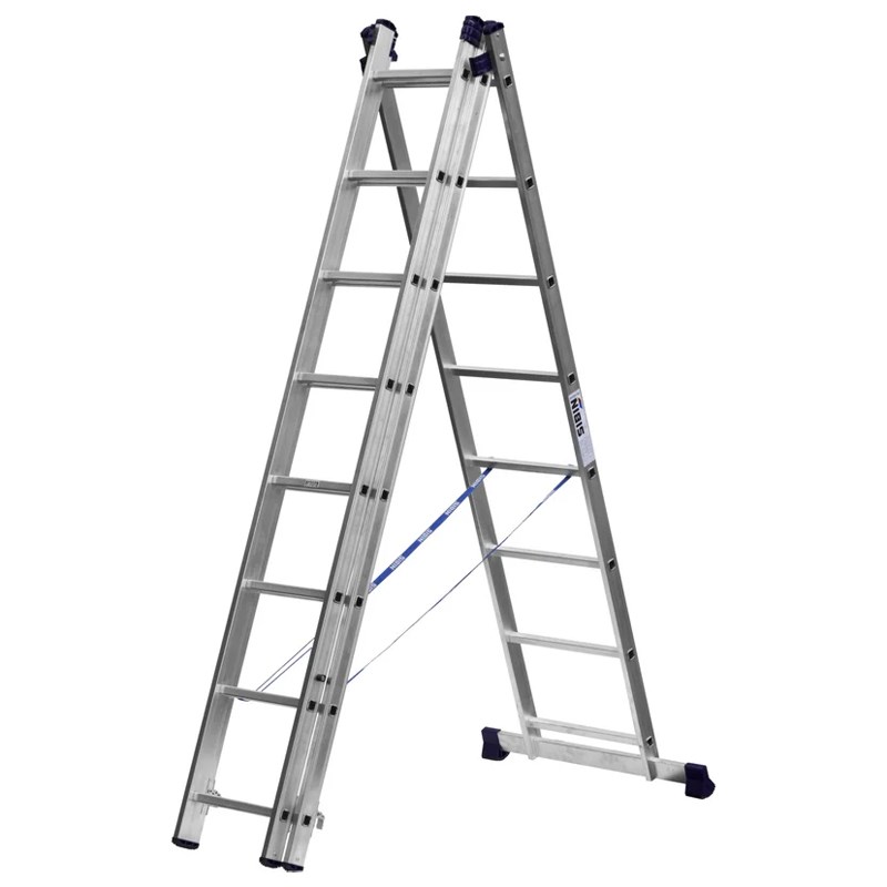 - Универсальность: лестница может использоваться как стремянка, стремянка с выдвижной секцией или приставная лестница
