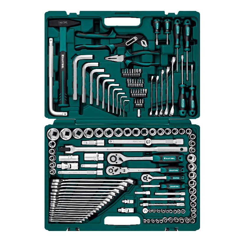 Набор инструмента универсальный KRAFTOOL EXTREM-142 (142 предм., 1/2″+3/8″+1/4″) - профессиональный набор для широкого спектра слесарно-монтажных работ. Для работ при строительстве, ремонте, обслуживания автомобиля и другой техники. Подходит для работы с различными видами крепежных изделий.