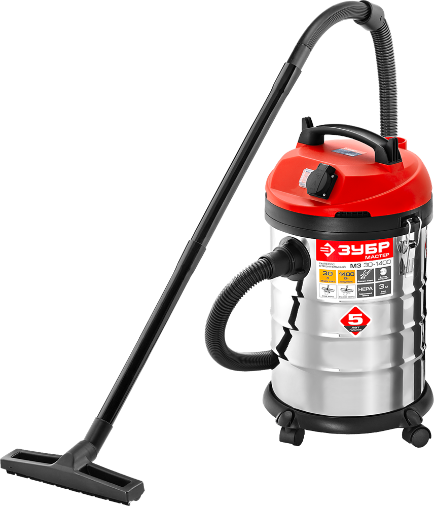 Пылесос строительный ЗУБР ПУ-30-1400 МЗ используется для уборки строительных площадок и производственных помещений.