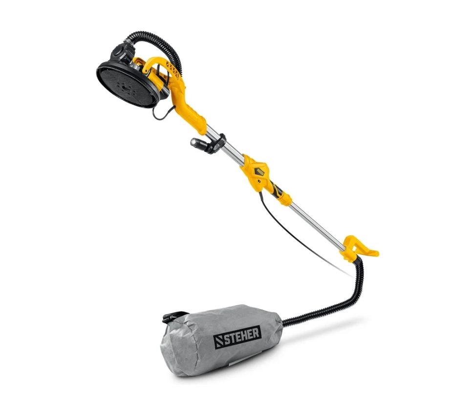 Шлифовальная машина для стен и потолков (жираф) STEHER DWL-800 - незаменимый инструмент для обработки как горизонтальных, так и вертикальных поверхностей. Применяется для сухого шлифования и финишной доводки стеновых и потолочных поверхностей.