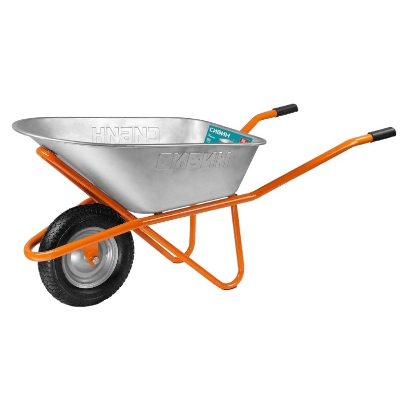 Строительная одноколесная тачка СИБИН СТ-12 применяется для транспортирования различных грузов во время проведения строительных работ.